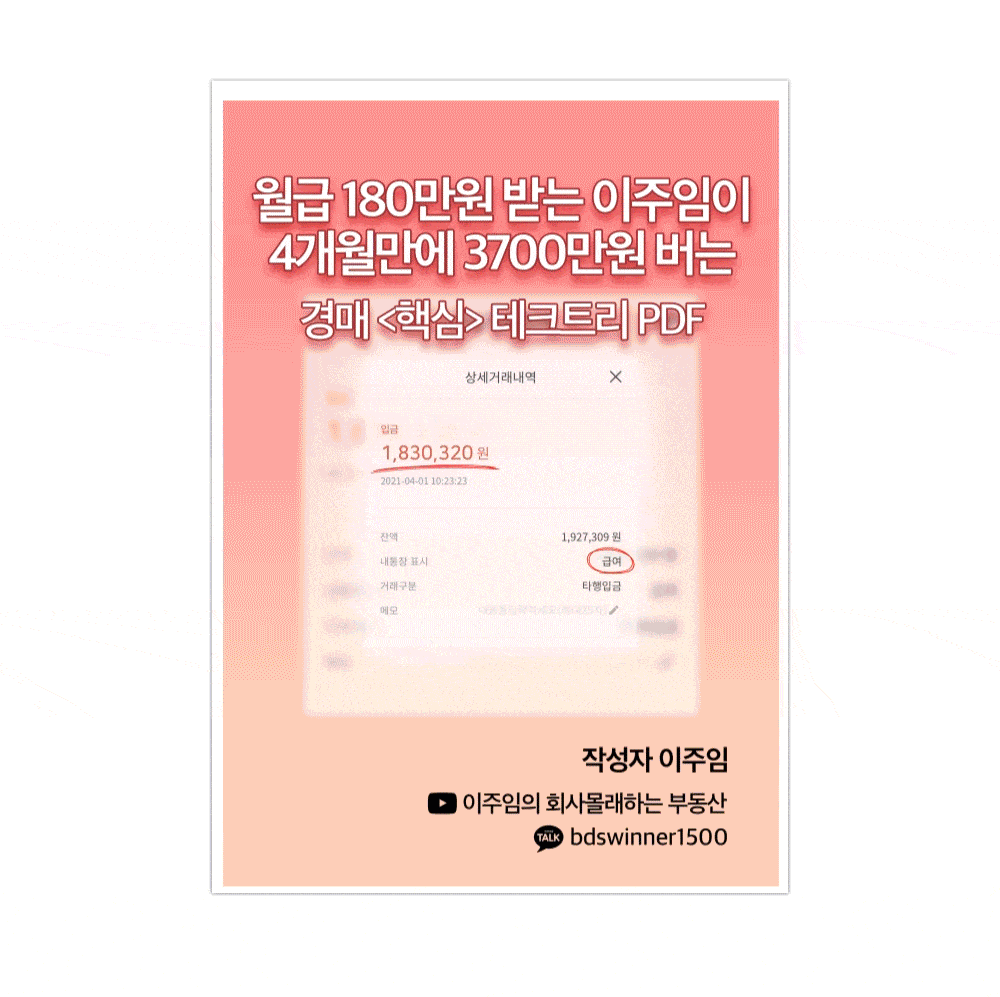 부동산 경매를 유튜브로 접하게 되어 이주임님의 유튜브를 보다가 전자책 구매하였습니다