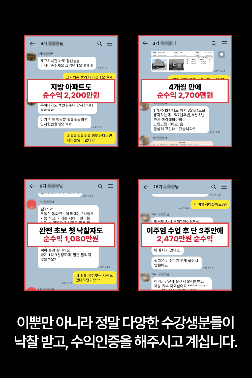 그리고 제가 파악한대로 이론이 아니라 실제로 기존 앞선 수강생들의 경매낙찰건을 실예로 들어가며