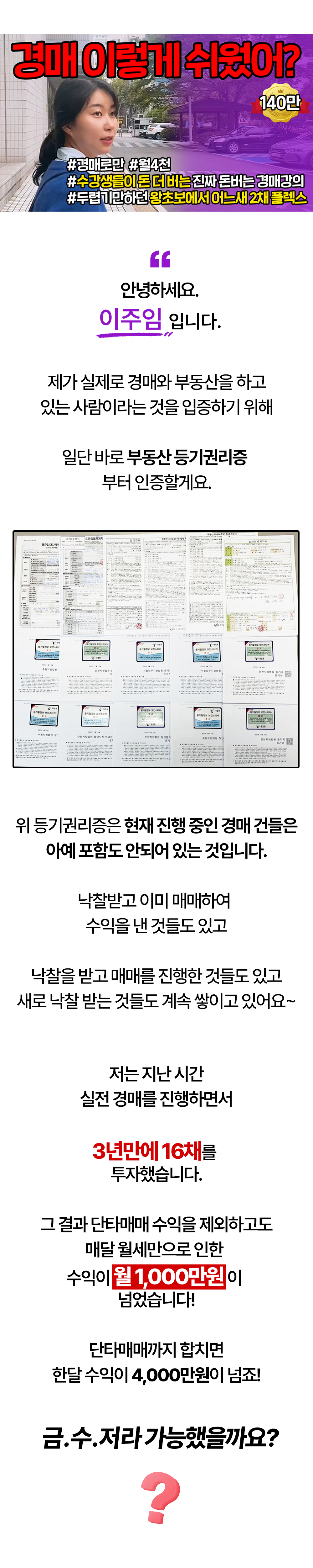 경매관련 유튜브로 여러가지 보다가 이주임님의 라이브 강의 듣고 쉽게 잘 설명해주셔서