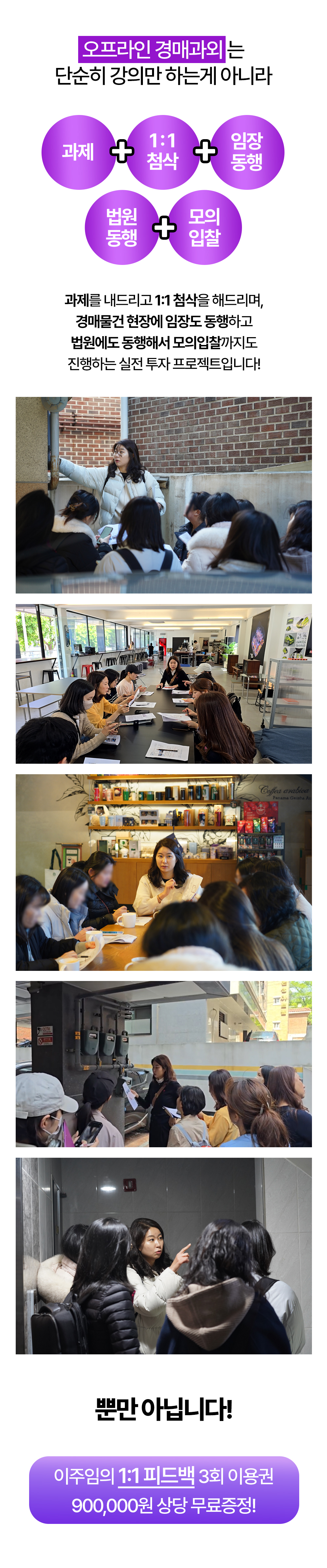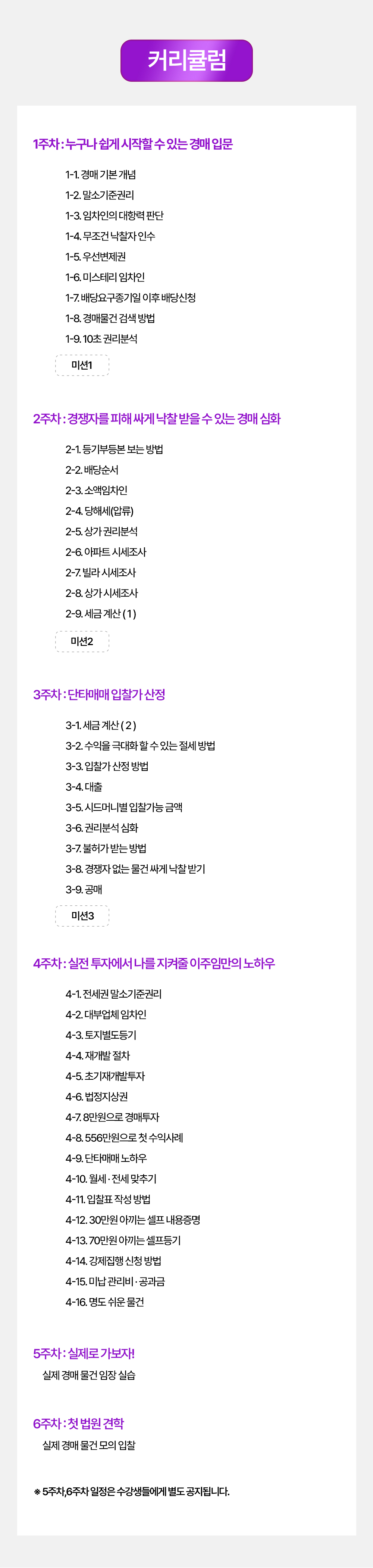 추가 2회 실전 임장 및 법원경매현장 일정은 실제 경매물건의 경매일자에 따라 스케쥴이 상이해질 수 있으니 과외반 수업중에 공지가 진행될 예정입니다!